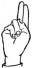 На ћирилици написано МАРТА БУМБАРЕВИЋ састоји се из 15 слова [?]. Исписано ћириличном једноручном азбуком за глувонеме: